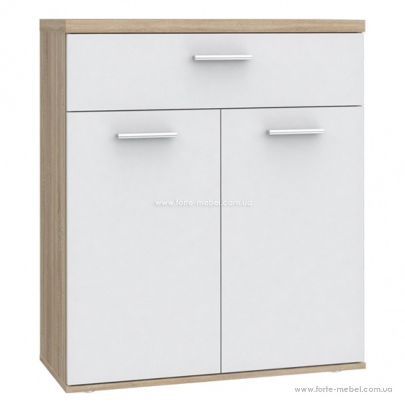 Высокий комод, выполненный в стиле, соответствующем требовательным вкусам подростков. Мебель доступна в сочетании двух цветов: корпуса в цвете Дуб Сонома, фасадов в белом цвете. Яркий комод, шкафы и ящик, безусловно, будет диверсифицировать интерьер молодежной комнаты.